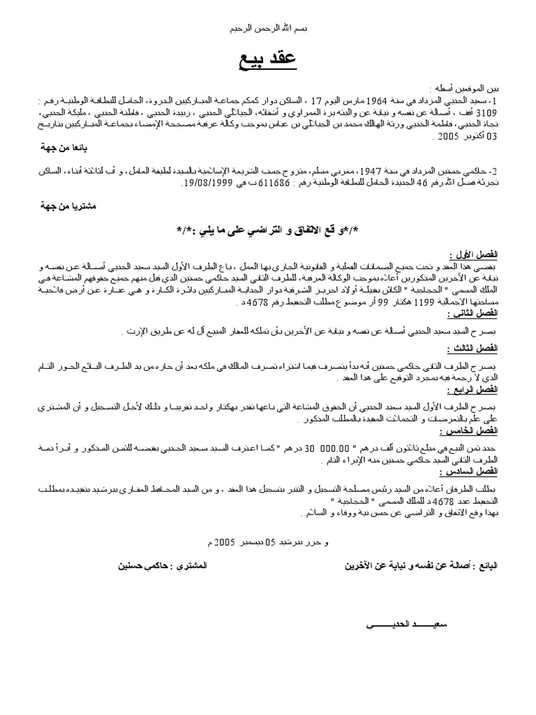 عقد بيع ارض ورثة. نماذج وصيغ العقود. بواسطة ines ena jadi metwefi lih 10 snin 5ala ardh b9ou awled 3ami 3ami twafa ba3d jiddi yetsarfou fiha fa mcha taw baba lawled 3ami w9alhem 5alina na9smou 9aloulou la fakifch ya3mel 9anouniya bech ye5ou bayou wraw 3andi zeda weld 3amti elli 3andou l7a9 fi warth b1 sur fi 7abes w madhmounou 4alt fi ism omou 3amti metwefya 9bal jidi w omou zeda madhmounha fih eljens dhakar. نموذج عقد صلح بين ورثة وموصى له. يكتب 00000 مترفي كامل ارض وبناء العقار الموضح بصدر هذا التعاقدوذلك على.