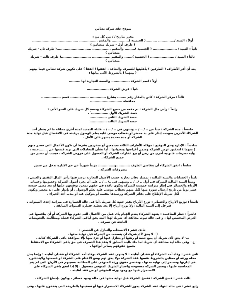 عقد شراكة بين شخصين. صيغة عقد شراكة بين شخصين. نموذج عقد شراكة. نموذج عقد شراكة بين شخصين.
